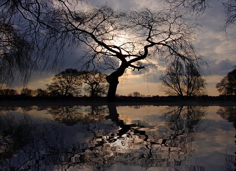 In the mysteries of life, one amazing tree seems to naturally bow to earth as its top trunk leans downward from its ever strong vertical base. With two large branches reaching up to the sky covered by a myriad of clouds, the magic of what’s above is also reflected on ground below. A very calm and bright pool of water mirrors the bowing tree as it bows back up to the sky as well!